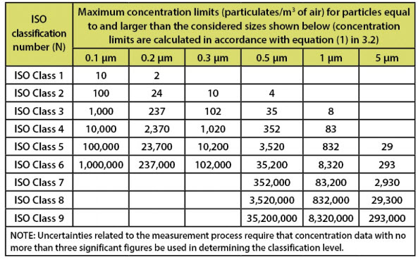 分類范圍從 ISO 1 級(最干凈)到 ISO 9 級(最不干凈)。